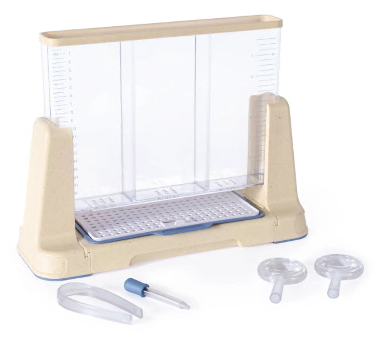 The Explore and Discover 3 Section Root View Planter gives young children a chance to grow their own plants, and observe, measure, and track their progress from seedling to full-grown plant. Store the included tools conveniently in the compartment under the planter when not in use. Planter features 3 sections for 3 different plants, or a comparison of 3 of the same plants with different variables for enhanced experiments. Easily remove the planter from the convenient stand for hands-on activities.