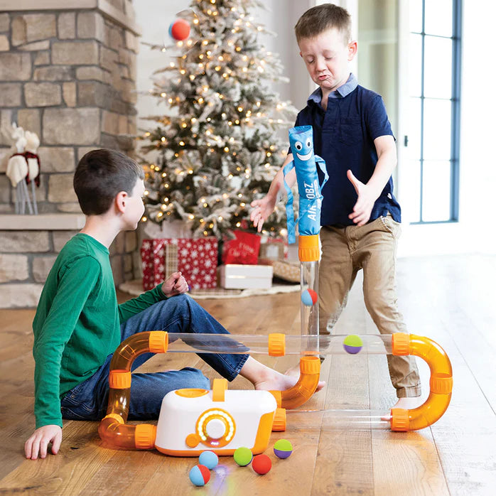 Get ready to blow your mind with the Air Toobz Whirlwind Accessory Pack! It’s time to crank up the breeze and add some serious gusts of fun to your Air Toobz creations! Watch as Windy dances with the flow, and Whirly spins into action, sending foam balls soaring through the air. Plus, you’ll get 10 dual-colored balls that bring a twist of excitement to every launch!