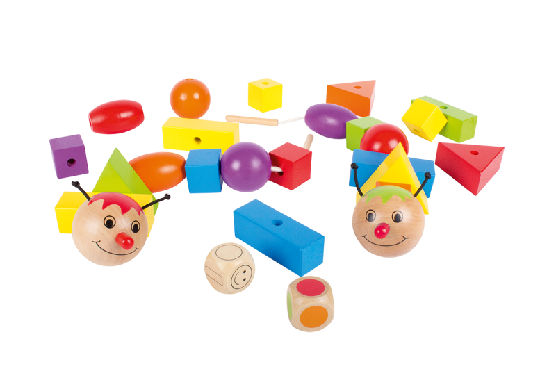 Ready, thread, go! Whoever gets six pieces in the diced colour onto their caterpillar first wins. Measures 200 X 150 X 70 mm. Contains 48 Pieces. Number of Players 1-4. Ages 3 and up.