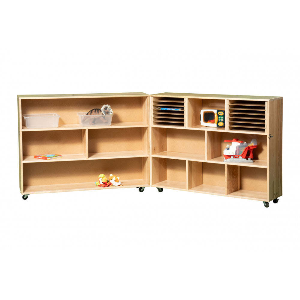 Unit measures 96"x38"x12" and includes latch and lockable casters.