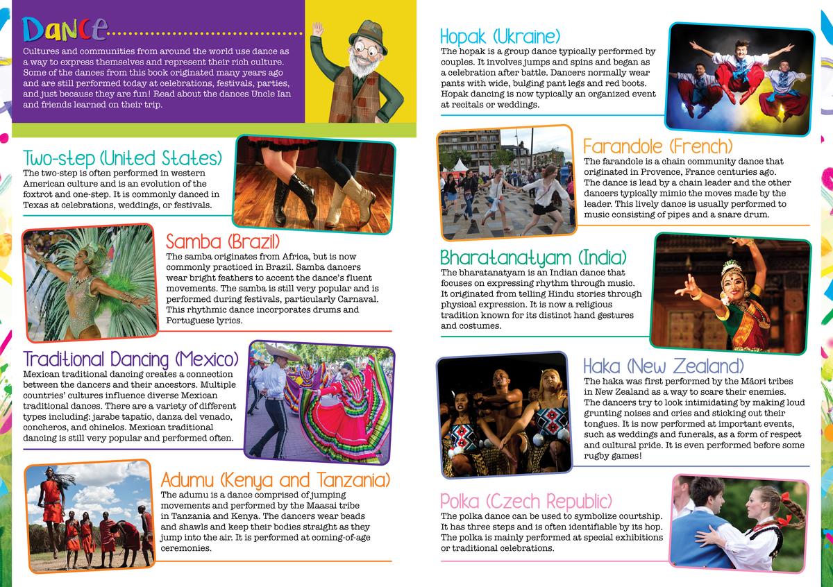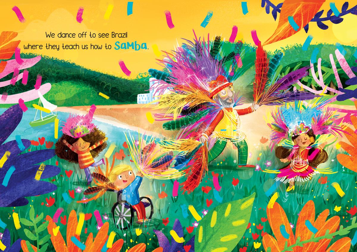 Discover some of the beautiful and unique dances from cultures around the world in this colorful and interactive title perfect for an engaging and high-energy story time. This rhyming story brings beautiful dances such as the samba, the trata, the flamenco, and more to life through bright illustrations. Back matter includes information about the history of the dances and the people and cultures that created them.