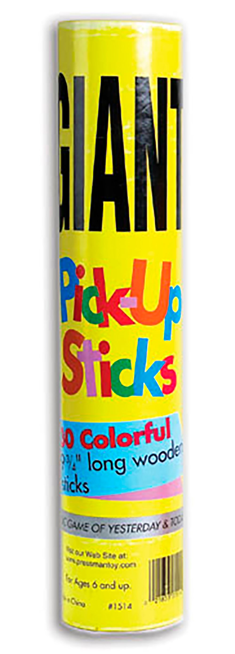 30 colourful, 9.75" long, wood, pick-up sticks in a convenient storage can. Ages 6 and up.