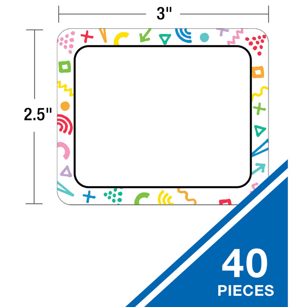 Whether on a field trip or in the classroom, Carson Dellosa's Happy Place 40-piece set of Name Tags will provide a fun and easy way to stay organized. The pack of self-adhesive name tags features a colorful, retro border design with writing space for names for back-to-school introductions, field trips, parent-teacher conferences, and more. Carson Dellosa's Happy Place Name Tags provide an easy way to label and organize for a successful school year. Each student name tag in this 40-piece pack measures 3 inches x 2 1/2 inches.