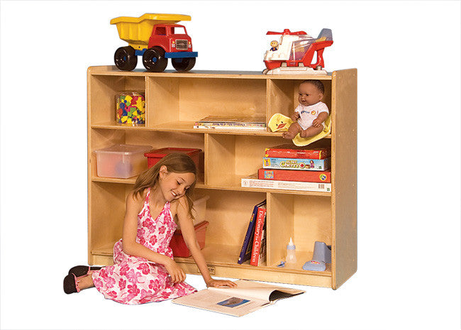 Unit has eight easy-to-access compartments which will provide ample storage in the classroom. Unit measures 46¼"L × 15?"W × 37¾"H.