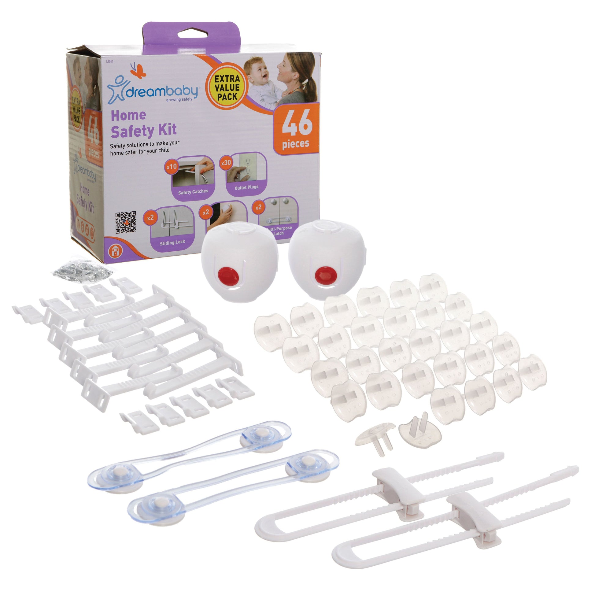 46-pieces provide a one-stop solution childproofing and home safety needs. Help keep cupboards and drawers securely closed to prevent curious toddlers from slamming their fingers or accessing potentially dangerous contents. Easy to install. Cover dangerous electrical outlets to help protect children from electric shock.