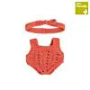 Made of recycled materials. They are in natural shades and have a handmade look. Each outfit comes with a hanger. Ages 3 and up.