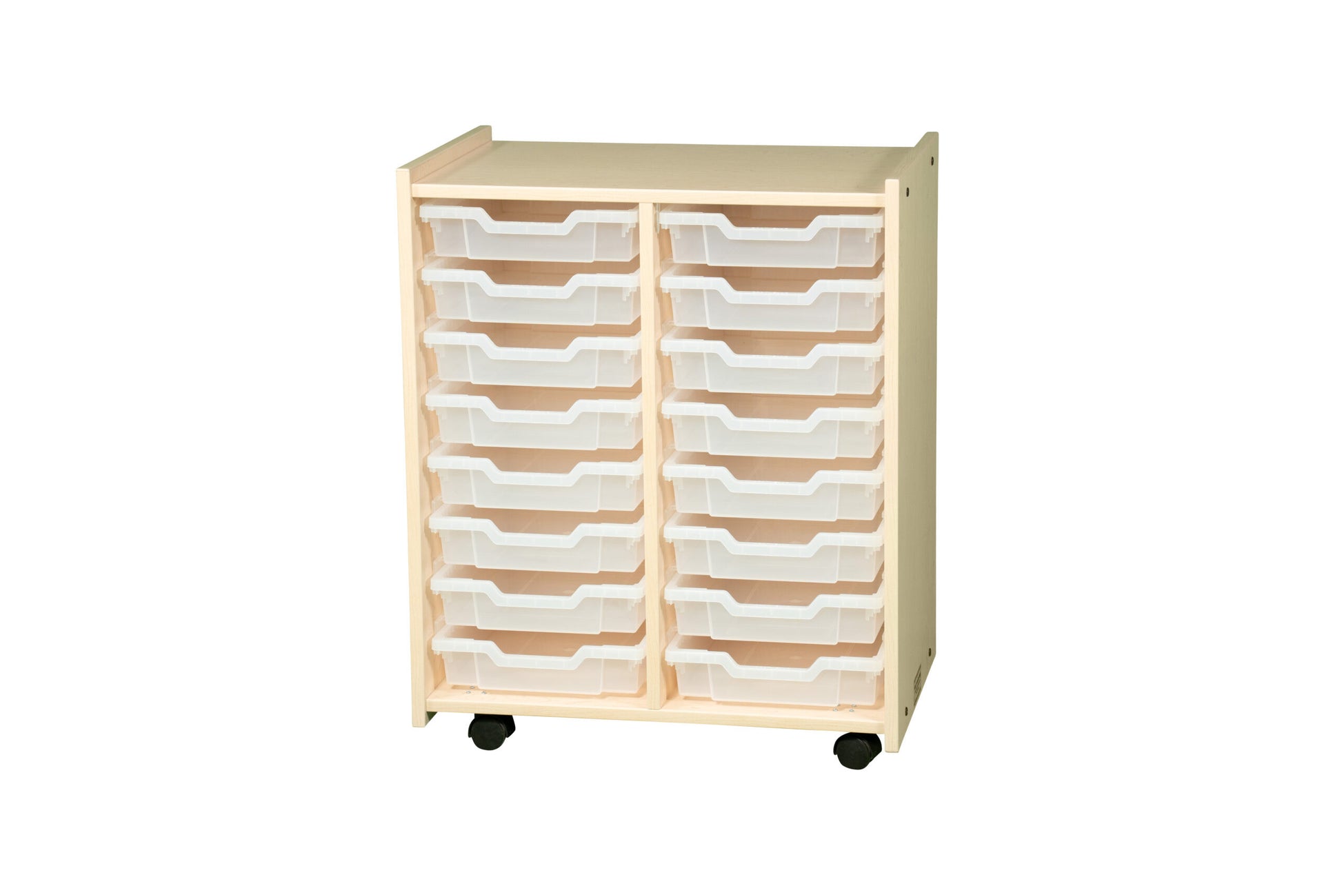 These units are specifically designed to organize the classroom and come with clear bins.