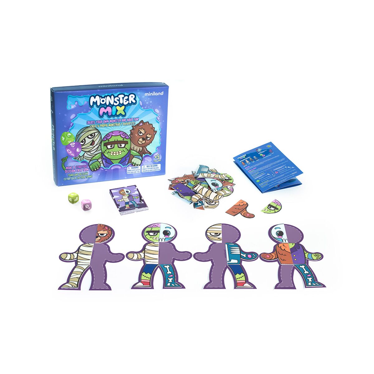 With the Monster Mix board game, boys and girls will create their own zombie while having fun learning. Roll the dice, collect body parts and compete to be the first to complete your monster. Ideal for ages 5 and up, this game develops concepts of symmetry, helping to understand the concepts of left and right. Made with sustainable materials.