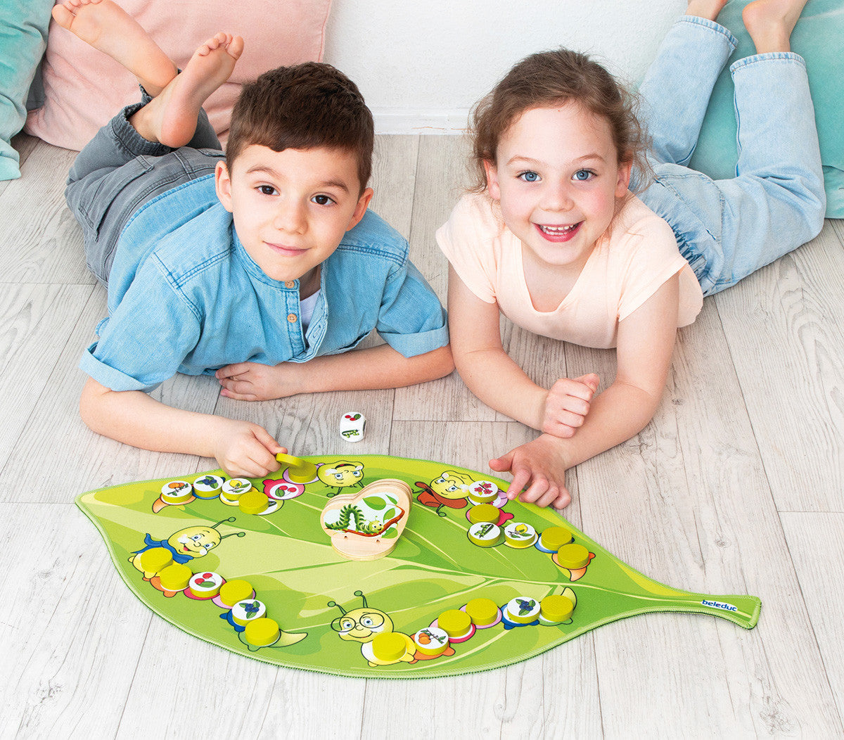 Responsiveness and memory skills are required, as the children memorize where the caterpillar’s food is hiding. Let’s discover the fascinating process of metamorphosis together – the transformation of a caterpillar into a butterfly! A lot is going on the lawn: Accompany the hungry caterpillars searching for fruits, vegetables, blossoms and leaves. Which caterpillar is the first to be full and transforms into a beautiful butterfly?