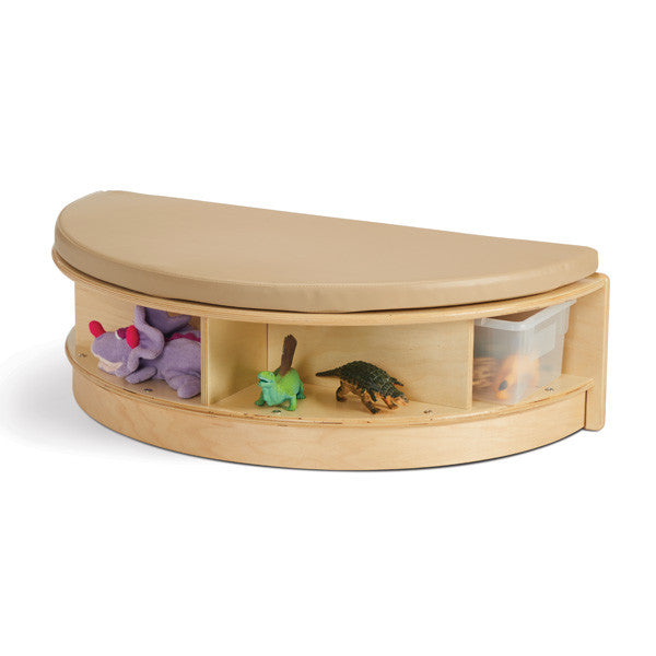 Place against a wall or partner with other Read-a-Round components to create a reading center. Seat is 11" high. Two clear cubbie-trays included for storing literacy items.. Comfortable cushion provides a pop of color and is easy to clean. Measures 11"H x 36"W x 18.5"D.