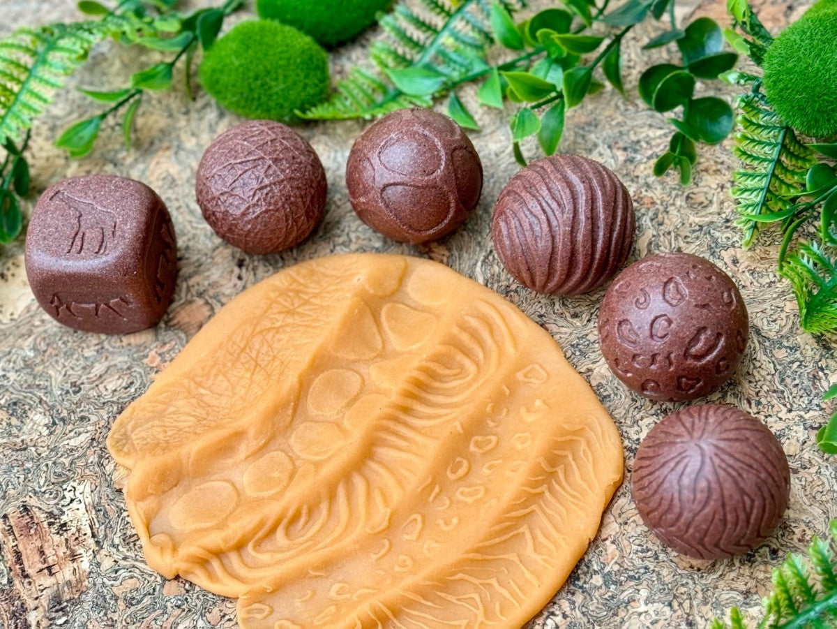 Take a walk on the wild side with this intriguing set of rollers featuring iconic wild animals: giraffe, zebra, tiger, leopard, and elephant. Perfect for interactive ‘Who am I?’ activities, children will enjoy creating tactile patterns in playdough, and stamping to identify the animal owner!?Made from a durable stone mix, the rollers and stamper are ideal for indoor and outdoor play, and easily washable after every wild adventure! Each measures 1.75". Ages 2 and up.