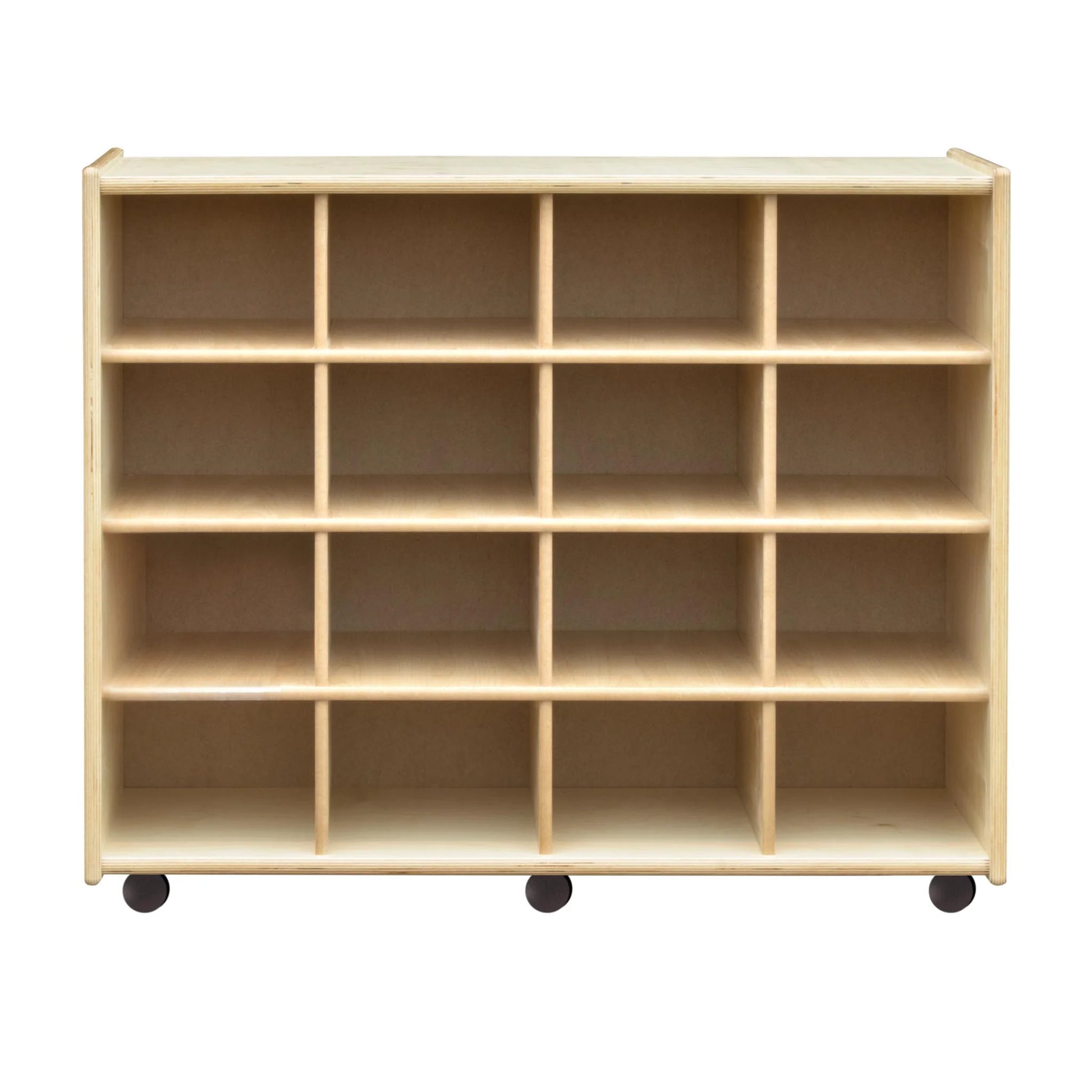 A smart, small bin organization solution, this 16 Small Bin Cubby Storage Unit is great for sorting a variety of items big and small. All units move easily from room to room on non-marking, lockable casters (included). Bolted, Baltic birch construction is extremely rugged, and has a limited, lifetime warranty. Ships fully assembled. Made in Canada from FSC certified wood. Dimensions: 38"L x 15"W x 32"H