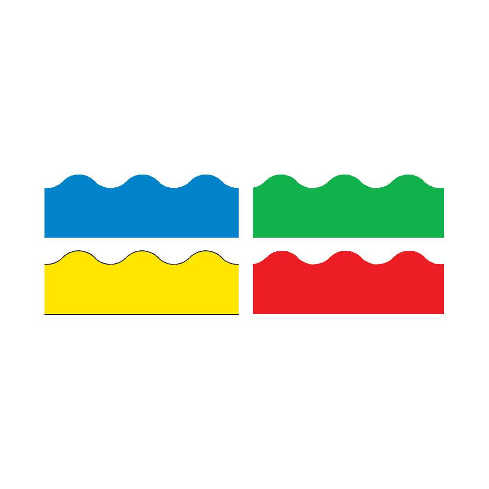Irresistible designs at your fingertips! Spruce up your spaces and rev up the fun with a convenient Variety Pack of Terrific Trimmers®>. Vibrant, contemporary designs create cheerful, inspiring classrooms, add pizzazz to parties and events, inspire clever hats 'n crowns, and dress up storage containers, cubbies, and shelves. Layer patterns on solids, sparkles, or metallics for extra WOW! Durable and reusable. Includes Red, Yellow, Green and Blue Terrific Trimmers®>. 156'.