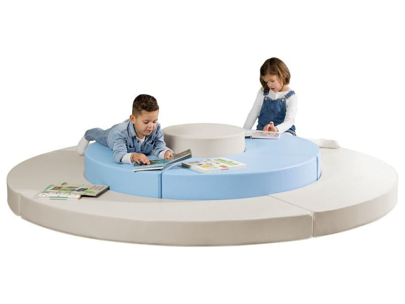 A deeply relaxing space with 2 heights, this island is the perfect place for a moment of reading or regrouping. Made from vinyl covers. Washable using soft cloth in soapy water. Fitted with an anti-slip base. 90.5"D. Accessories are not included.