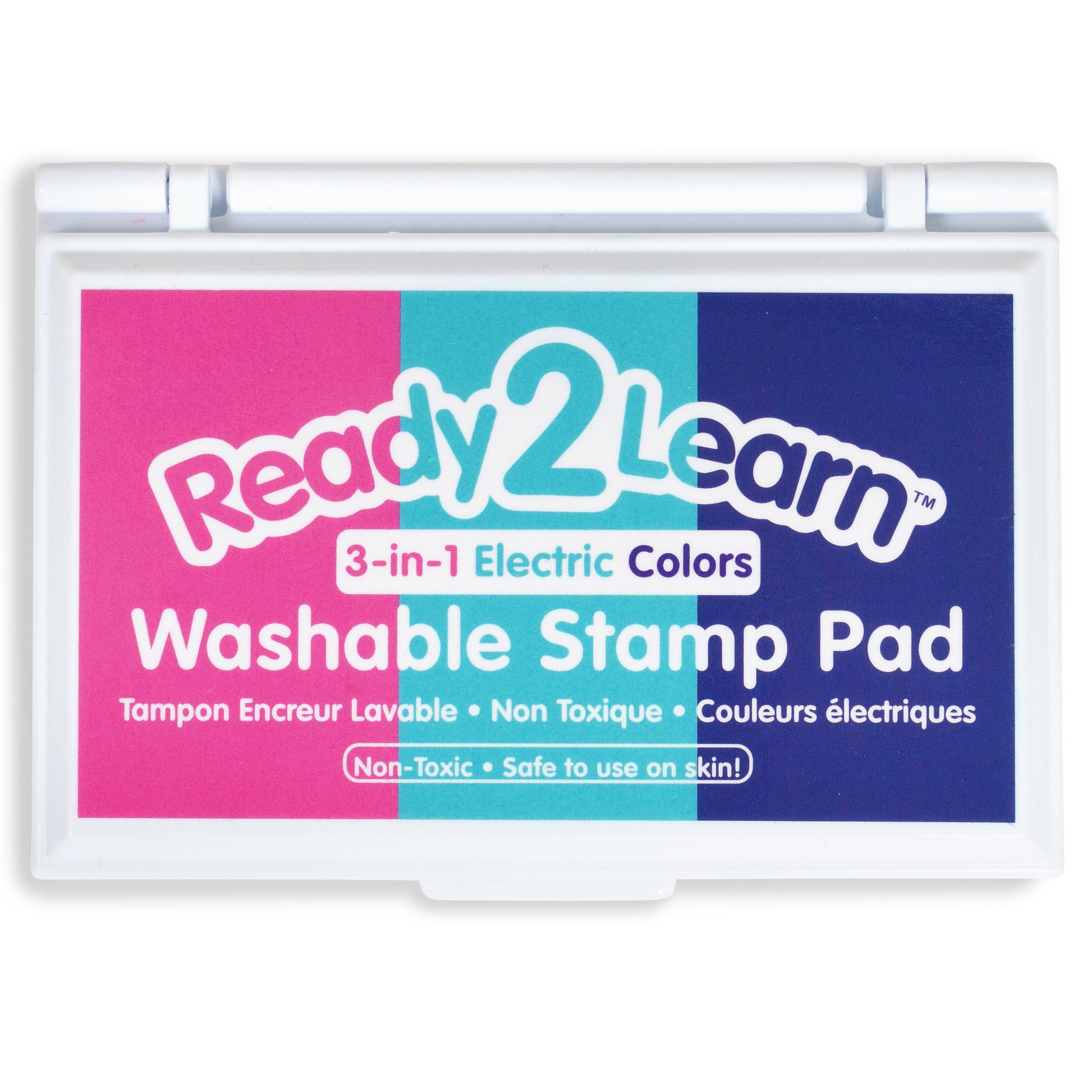 Stamp and create with this electric Washable 3-in-1 Stamp Pad! This stamp pad features sections of pink, purple and turquoise ink. It is made of non-toxic ink. The ink is acid-free and fade-resistant for archival quality, which means you can store your little artist’s creations forever! The raised pad means there are no hard edges around the ink. Children can press down without hitting an edge, which provides more area for stamping. An open-ended tool to decorate scrapbooks, notebooks or cards, this stamp pad inspires creative expression and imagination. As children stamp, they will develop fine motor skills and hand-eye coordination. The ink will wash off skin with soap and water. Size of entire stamp pad (with plastic casing): 3.9"L x 2.75"W x 0.6"H; Size of ink pad: 3.4"L x 2"W. Ages 3 and up.